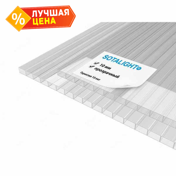 Сотовый поликарбонат 10 мм SOTALIGHT прозрачный 2100х6000 мм