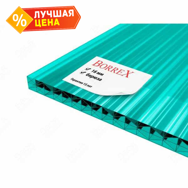 Сотовый поликарбонат 16 мм BORREX бирюза 2100х6000 мм