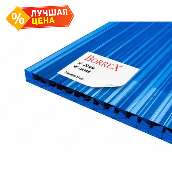 Сотовый поликарбонат 20 мм BORREX синий 2100х6000 мм - это прочный и легкий материал, который отлично подходит для использования в различных строительных и дизайнерских проектах. Поликарбонат обладает высокой прочностью и устойчивостью к воздействию внешних факторов, что делает его идеальным выбором для создания крыш, навесов, ограждений и других конструкций.