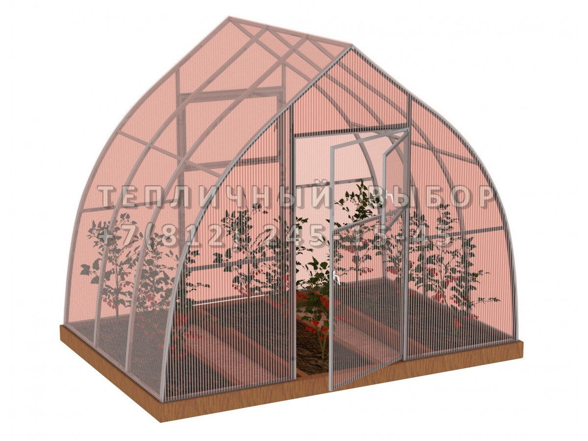 Теплица из поликарбоната-фито Усиленная Капелька 2,5х2 h=2.3 м профиль 25х25 мм