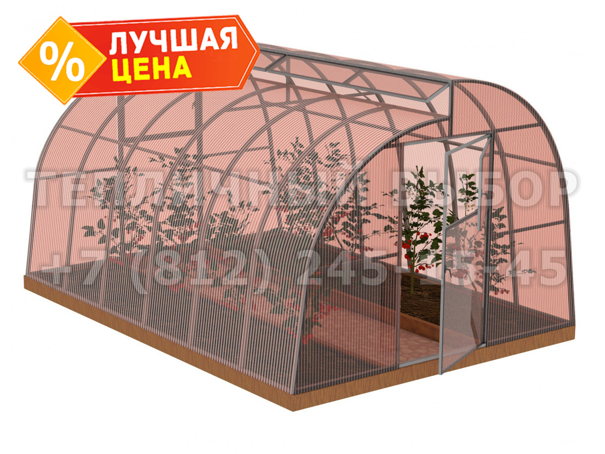Теплица из поликарбоната-фито Усиленная По Митлайдеру 3х4 h=2.2 м профиль 25х25 мм