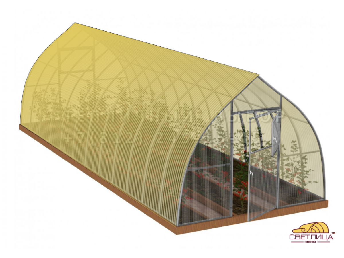 • укрывной материал на крышу теплицы - легендарная пленка «Светлица» толщиной 150 мкм, пленка имеет уникальный состав, который делает ее прочной, эластичной и долговечной (не менее 7 лет без снятия на зиму)