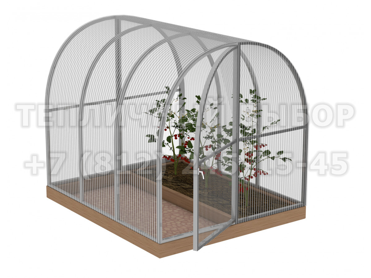 Теплица из поликарбоната Усиленная Арочная 1,6х2 h=1.68 м профиль 20х20 мм