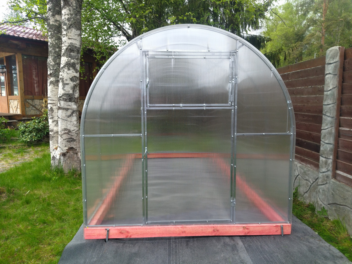 В разобранном виде теплица состоит из отдельных сварных рам в виде дуги.