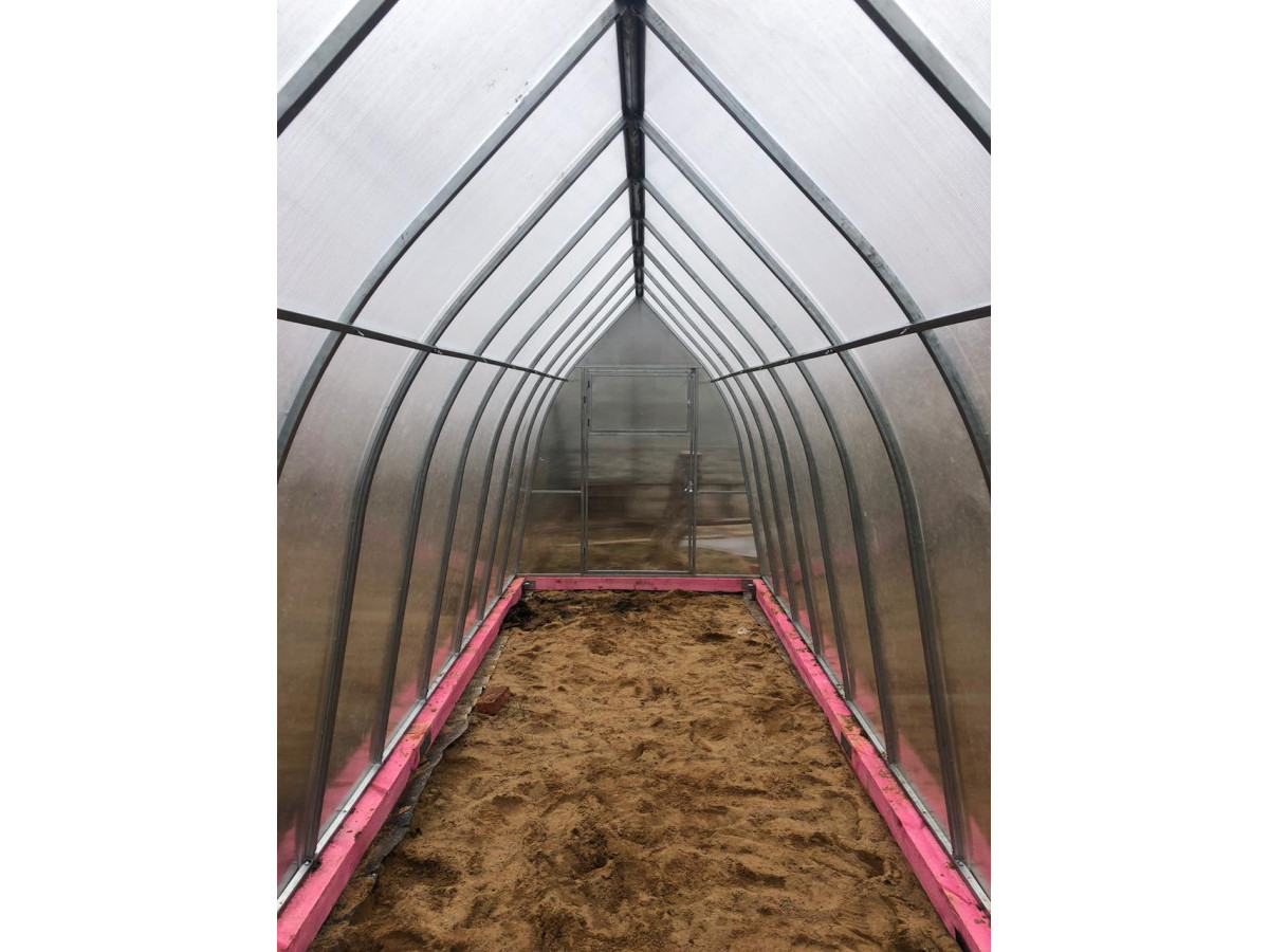 Теплица из поликарбоната Усиленная Капелька 2,1х8 h=2.3 м профиль 25х25 мм