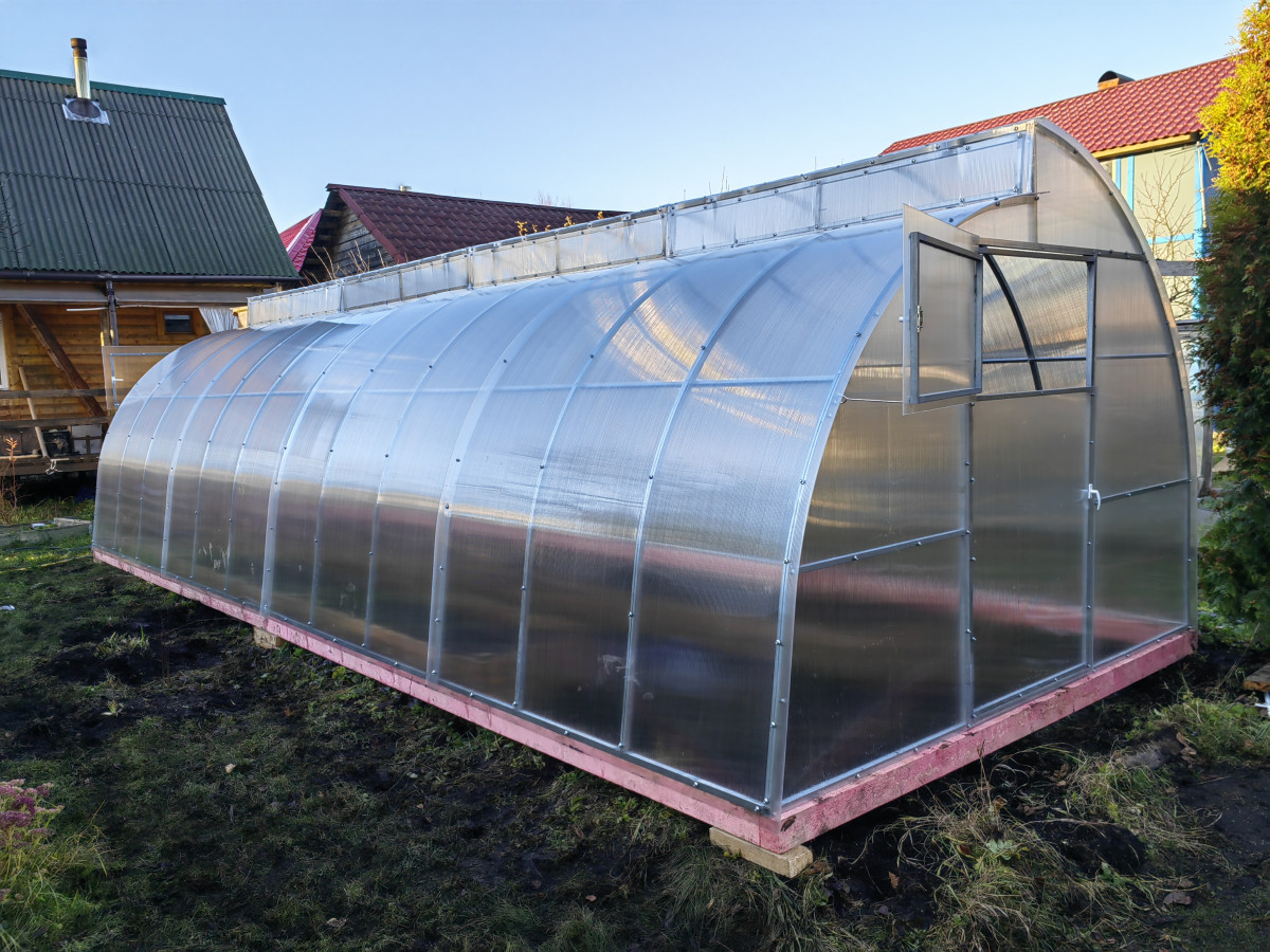 • поликарбонат толщиной 4 мм (в транспортном состоянии свёрнутые в рулон листы имеют диаметр до 80 см и длину 2.1 м);