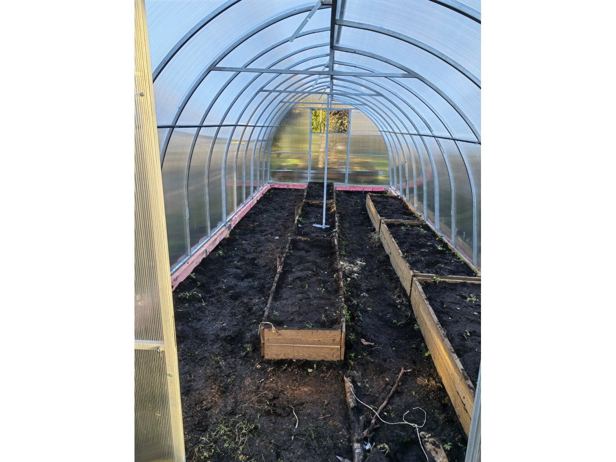 • длина фрамуги соответствует длине теплицы, высота 22 см, открывается изнутри и фиксируется в открытом состоянии с помощью ограничителя;