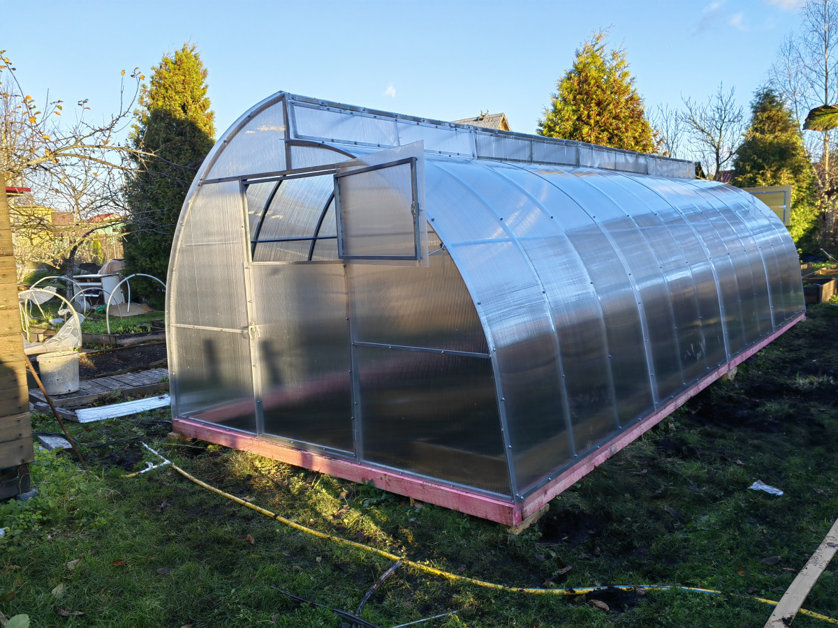 • длина фрамуги соответствует длине теплицы, высота 22 см, открывается изнутри и фиксируется в открытом состоянии с помощью ограничителя;